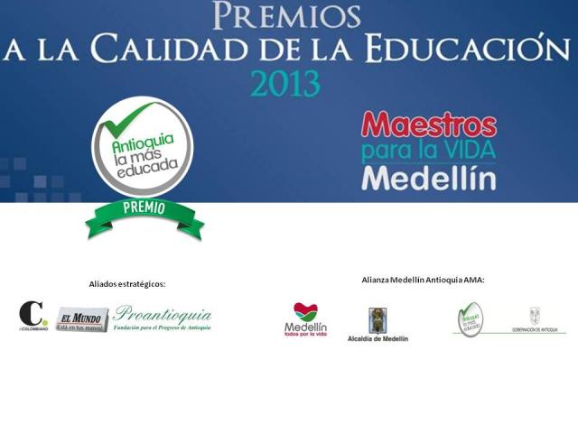 A continuación podrá encontrar las guías del Premio a la Calidad de la Educación "Maestros para la vida" y "Antioquia la más educada". Estas además de ser un instrumento de postulación son un medio de autoevaluación institucional que le permite al colegio revisar su gestión y plantear una meta de mejoramiento según su realidad.