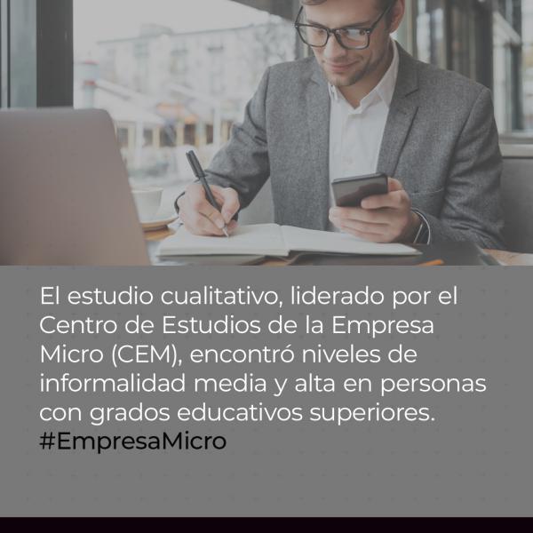 Este estudio cualitativo liderado por el CEM, encontró niveles de informalidad media y alta en personas con grados educativos superiores, además, clasificó las principales cosmovisiones de los empresarios encuestados, es decir, la manera en que lideran sus negocios.