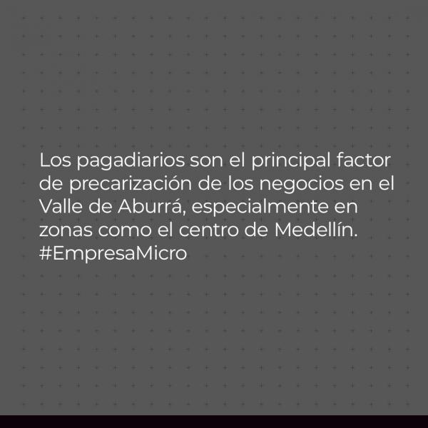 Racionalidad y pragmatismo, aventura y riesgo, vanguardia y disrupción, fueron otras de las cosmovisiones identificadas en el estudio, en el que también se identificó que el vínculo emocional fuerte con el negocio es un motivador contundente para la formalización. Los pagadiarios son el principal factor de precarización de los negocios en el Valle de Aburrá, especialmente en zonas como el centro de Medellín.