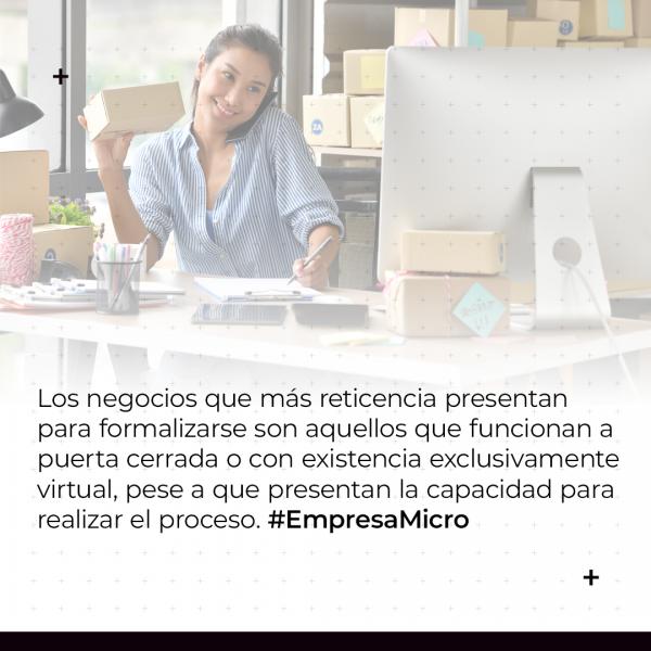 Los negocios que más reticencia presentan para formalizarse son aquellos que funcionan a puerta cerrada o con existencia exclusivamente virtual, pese a que presentan la capacidad para realizar el proceso.
