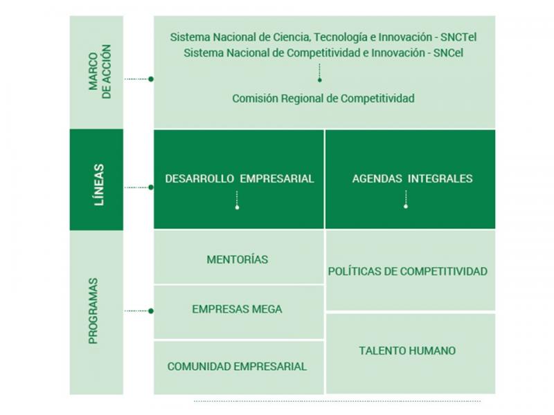 Contribuye al fortalecimiento de la competitividad regional apoyando las agendas integrales que faciliten la formación pertinente del talento humano y el desarrollo de políticas públicas de competitividad.