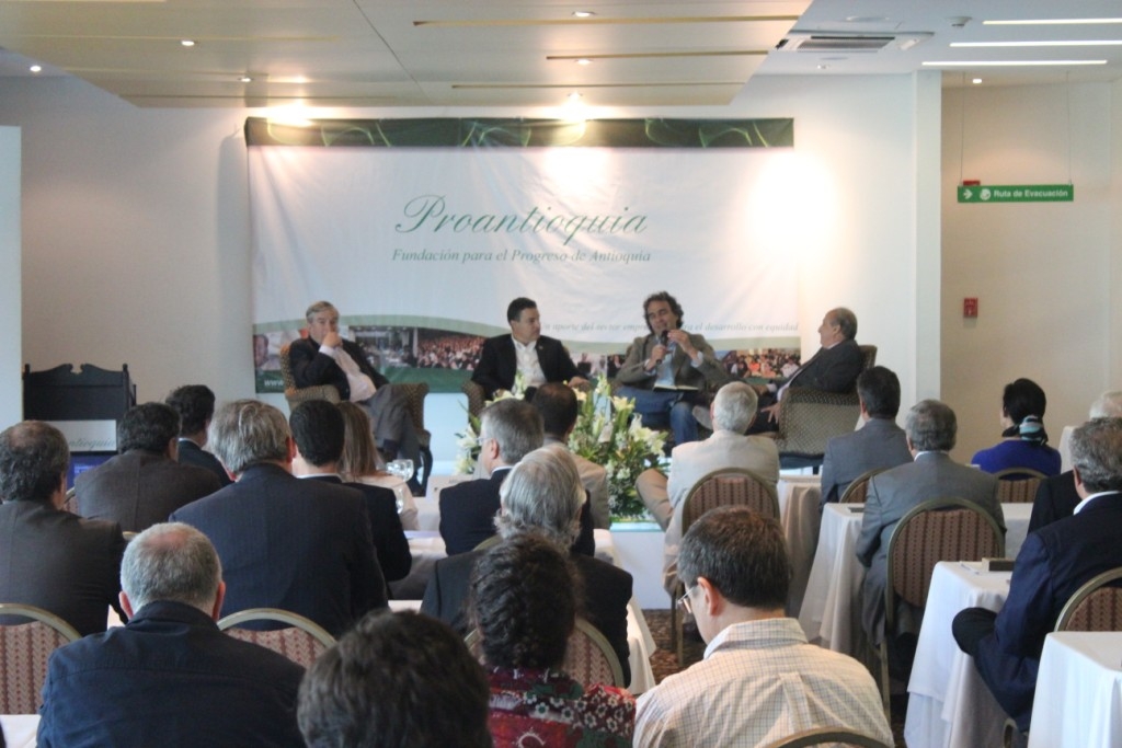 Después de proceder con los trámites legales de la Asamblea, se llevó a cabo un conversatorio con los señores Gobernador de Antioquia, Sergio Fajardo Valderrama y el Alcalde de Medellín, Aníbal Gaviria, con la moderación del doctor Nicanor Restrepo Santamaría, Presidente del Consejo de Proantioquia y Rafael Aubad, sobre los grandes proyectos de sus administraciones, los retos más inmediatos y los temas cruciales que le plantearán al nuevo Presidente de la República.