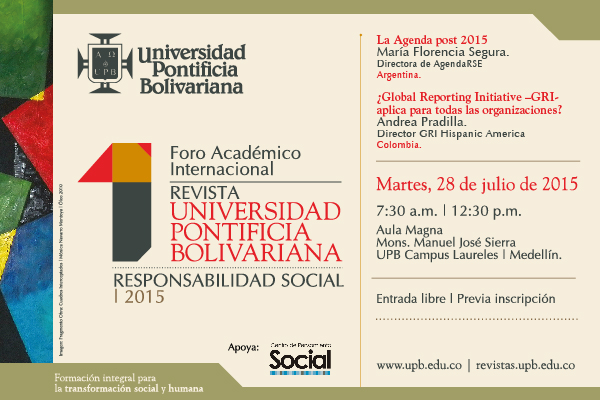 En el marco de la Cátedra de Pensamiento Social y en asocio con la Universidad Pontificia Bolivariana se discutirá sobre los retos que enfrentan las organizaciones en la nueva agenda de desarrollo post 2015, así como en el Global Reporting Initiative. Este evento que se llevará a cabo el próximo martes 28 de julio desde las 7:30 a.m.en el Aula Magna de UPB, servirá para el relanzamiento de la Revista Institucional, en la cual también participó el Centro de Pensamiento Social con el artículo "El rol del sector privado en la construcción del Desarrollo Sostenible".