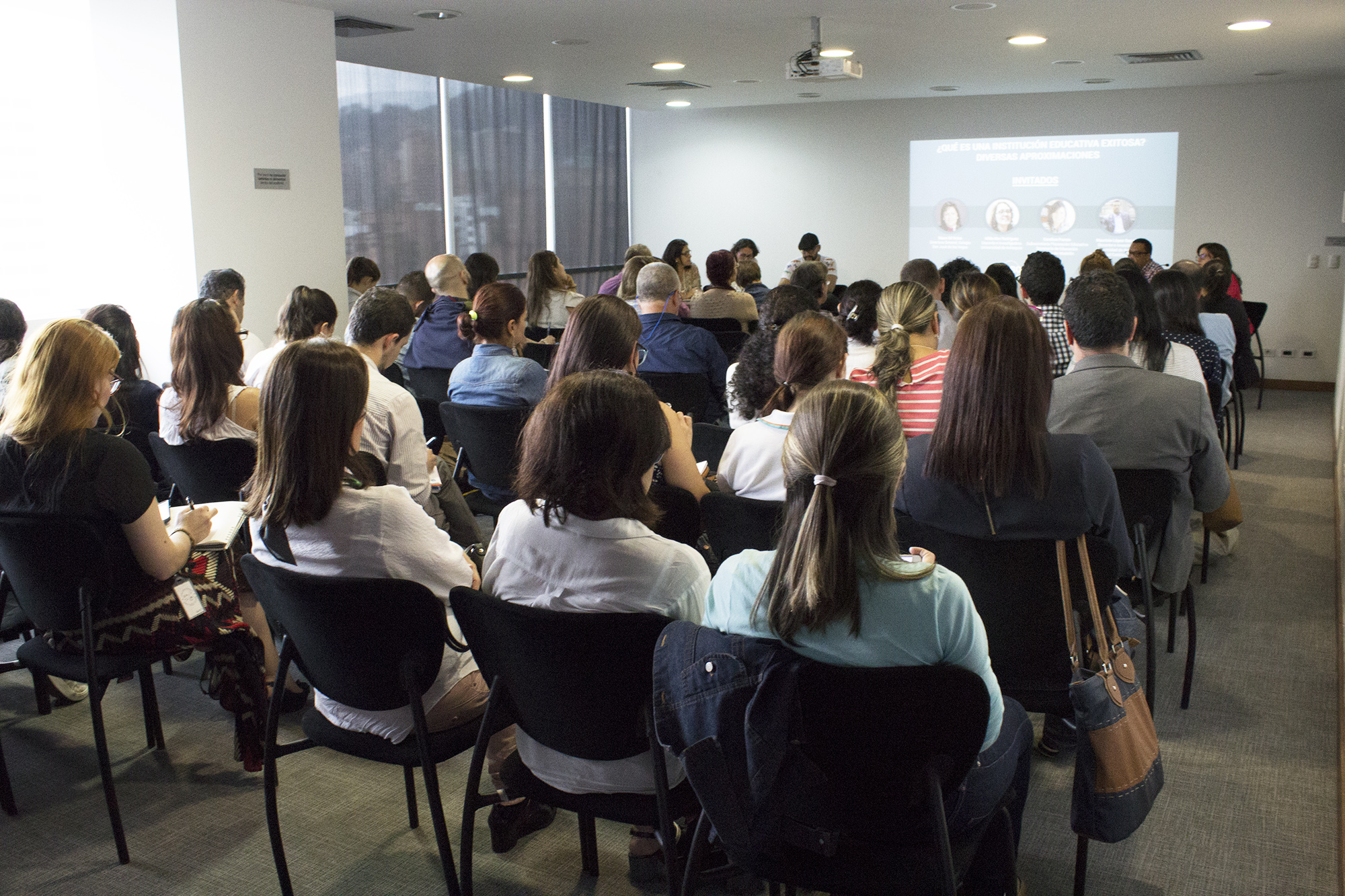 Cerca de 50 personas relacionadas con el sistema educativo, participaron el pasado 17 de mayo en nuestro primer conversatorio-taller del año sobre factores y prácticas de éxito en las instituciones educativas. Contamos con la presencia de cuatro invitados expertos en educación, que abordaron el tema desde diversas perspectivas: Mauricio López, Economista, docente e Investigador de la Universidad de Antioquia; Carolina Franco, Subsecretaria de Planeción Educativa de Medellín; Hilda Mar Rodríguez, docente de educación e Investigadora de la Universidad de Antioquia, y Diana Gil Salas, Directora General del Colegio San José de las Vegas.