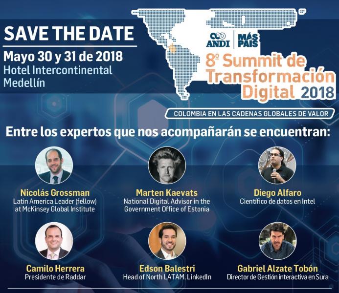 Este 30 y 31 de mayo se presentarán las ideas que impulsan la generación de más y mejores oportunidades de negocio para un sector que ha venido incrementando su participación en la economía mundial. Con la participación de expertos y líderes de la transformación digital. Algunos de ellos son: Ministro de tecnologías de la información y las telecomunicaciones; Marten Kaevats National, Digital Advisor in the gobernment of Estonia; Nicolás Grossman, Latin America Leader (fellow) at Mckinsey Global Institute; Diego Alfaro, Científico de dato en Intel; Oscar Cabrera Izquierdo, Presidente de BBVA; Daniel Ceballos, Coordinador de tecnología de Crepes & Waffles; Camilo Herrera, Presidente de Raddar; Jose Caballero, Senior Economist IMD World Competitiveness Center; entre otros. Seguir leyendo...