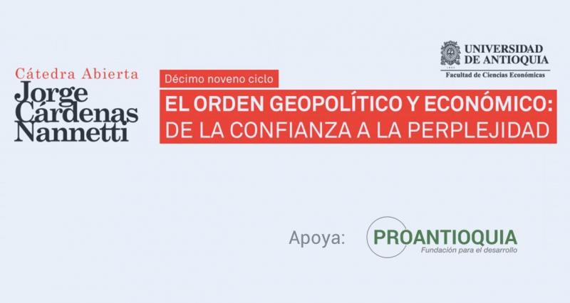 Este jueves, 8 de julio, a las 6:30 pm, en la Facultad de Artes de la Universidad de Antioquia, ubicada en el barrio Carlos E. Restrepo, será el lanzamiento de la Cátedra Jorge Cárdenas Nannetti, con el ciclo denominado El orden geopolítico y económico: de la confianza a la perplejidad. Entrada libre con inscripción previa aquí.