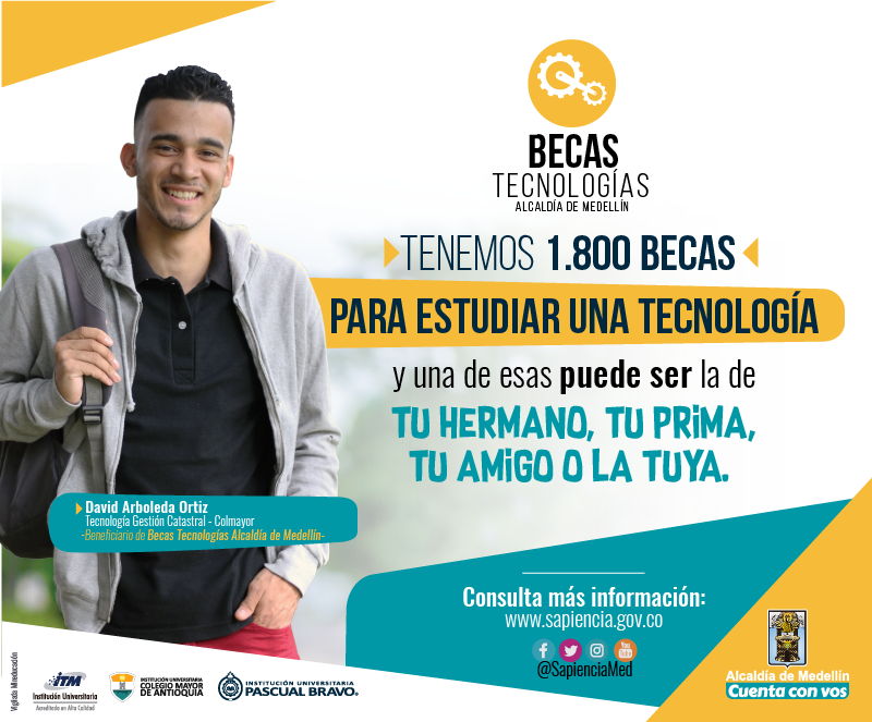 Hasta el 4 de octubre, la Alcaldía de Medellín tendrá vigentes las inscripciones para la segunda convocatoria del programa Becas Tecnologías. Hay 1.800 nuevas becas en modalidad presencial y virtual, disponibles ofrecidas por Sapiencia y las insticuones de educación superior del Municipio de Medellín. Inscribirse aquí...