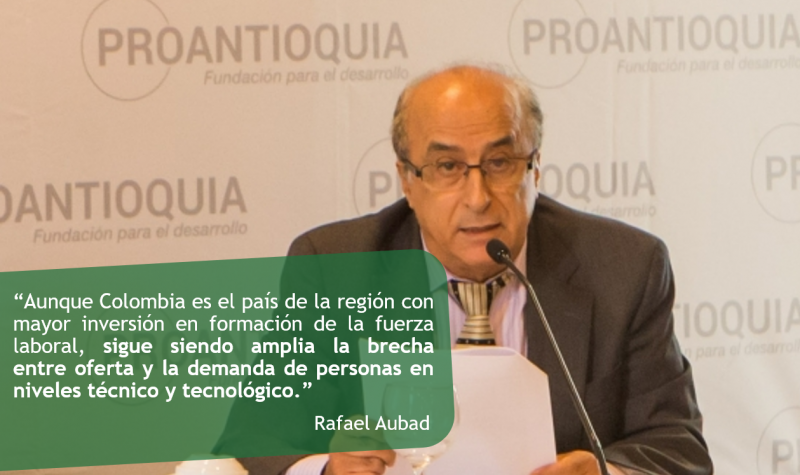 "Estudios recientes sobre oferta y demanda laboral indican que el 50% de los empleadores encuestados manifiestan dificultades para encontrar el talento humano requerido en sus entidades. Aunque Colombia es el país de la región con mayor inversión en formación de la fuerza laboral, sigue siendo amplia la brecha entre oferta y la demanda de personas en niveles técnico y tecnológico. Baja cobertura educativa en estos niveles, baja valoración social de este tipo de formación y una demanda concentrada en la formación universitaria, aparecen como las principales causas. ¿En qué fallamos? ¿Por qué nuestros programas de formación no garantizan la empleabilidad de los egresados?