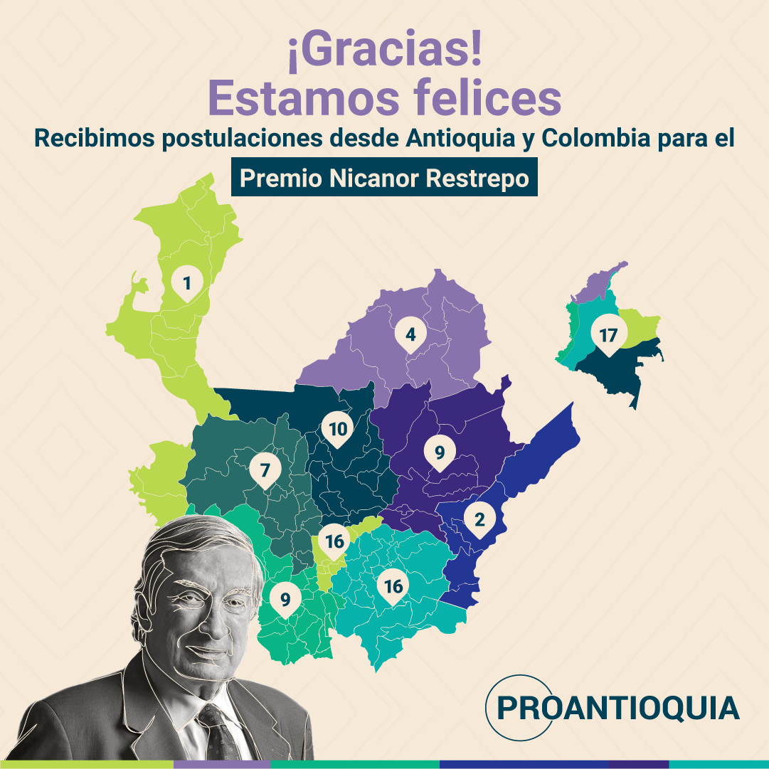 Gracias por participar en la convocatoria del Premio Nicanor Restrepo Santamaría 2022. Este año recibimos 23 postulaciones en investigación social y cerca de 70 experiencias en educación. Nos alegra contarles que todas las subregiones de Antioquia participaron y que 12 departamentos de Colombia también respondieron a nuestra convocatoria.