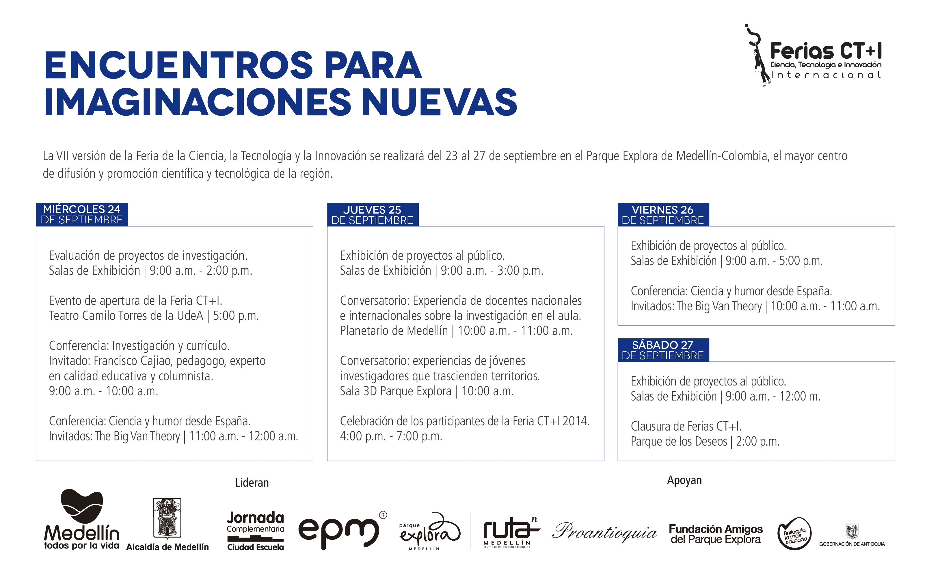 700 niños y jóvenes investigadores provenientes de Medellín, Antioquia y países como Argentina, Brasil, Chile, Egipto, Honduras, India, Italia, México, Panamá, Paraguay, Perú, Sri Lanka y Uruguay participaran de la séptima versión de la Feria CT+I.