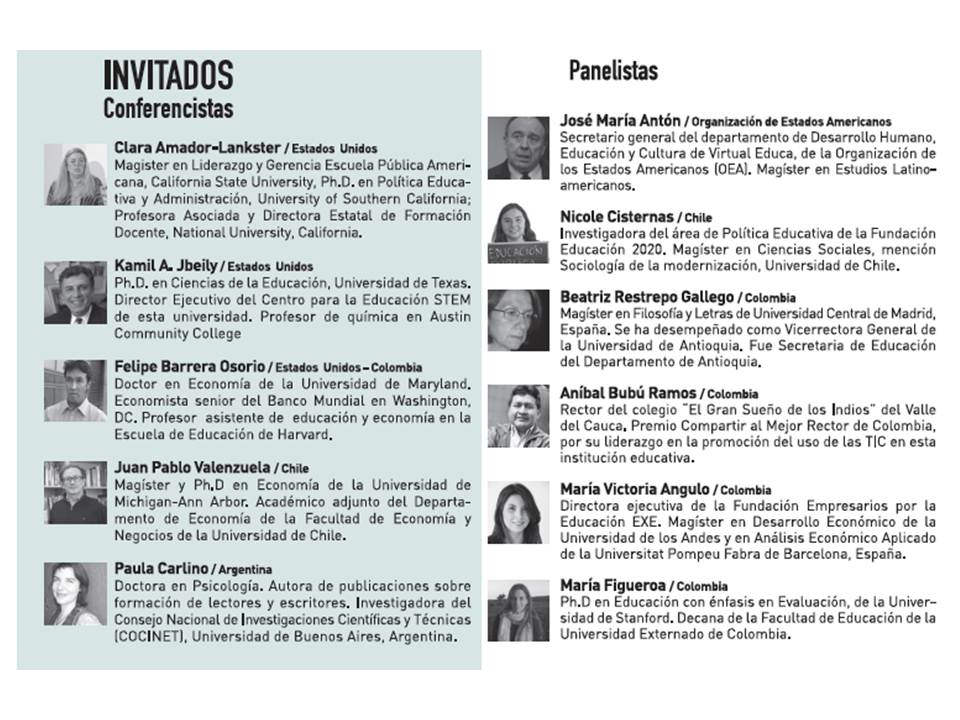 Conoce los invitados de los territorios colombianos y de otros países como Argentina, Chile, Estados Unidos y Japón que estarán en las conferencias, debates y paneles de la 1° Cumbre Nacional de Educación: los territorios cuentan