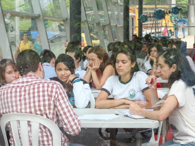 El pasado 5 de junio se realizó la rueda del conocimiento en la que los voluntarios asesoraron a los estudiantes que participarán en la Feria Central CT+I 2014, con el propósito de darles orientación en el proceso investigativo, a través de metodologías dinámicas y divertidas que les ayudan a identificar herramientas útiles para su participación.