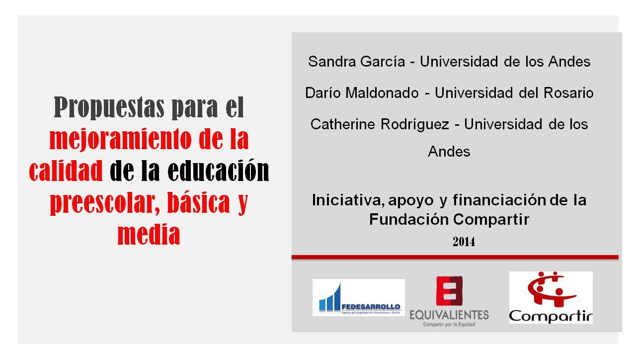 Fedesarrollo, Equivalientes y Fundación Compartir presentan la investigación "Propuestas para el mejoramiento de la calidad de la educación preescolar, básica y media", con el apoyo de los investigadores Sandra García y Catherine Rodríguezde la Universidad de los Andes y Darío Maldonado de la Universidad del Rosario.