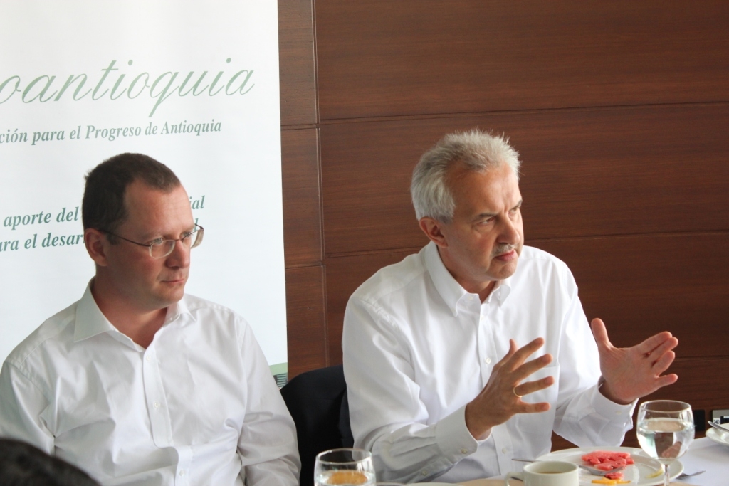 El viernes 30 de agosto en Proantioquia se realizó una reunión con la presencia del Profesor Reinhard Hüettl, Director Científico del Centro Alemán de Investigación en Geociencias así como del Dr.