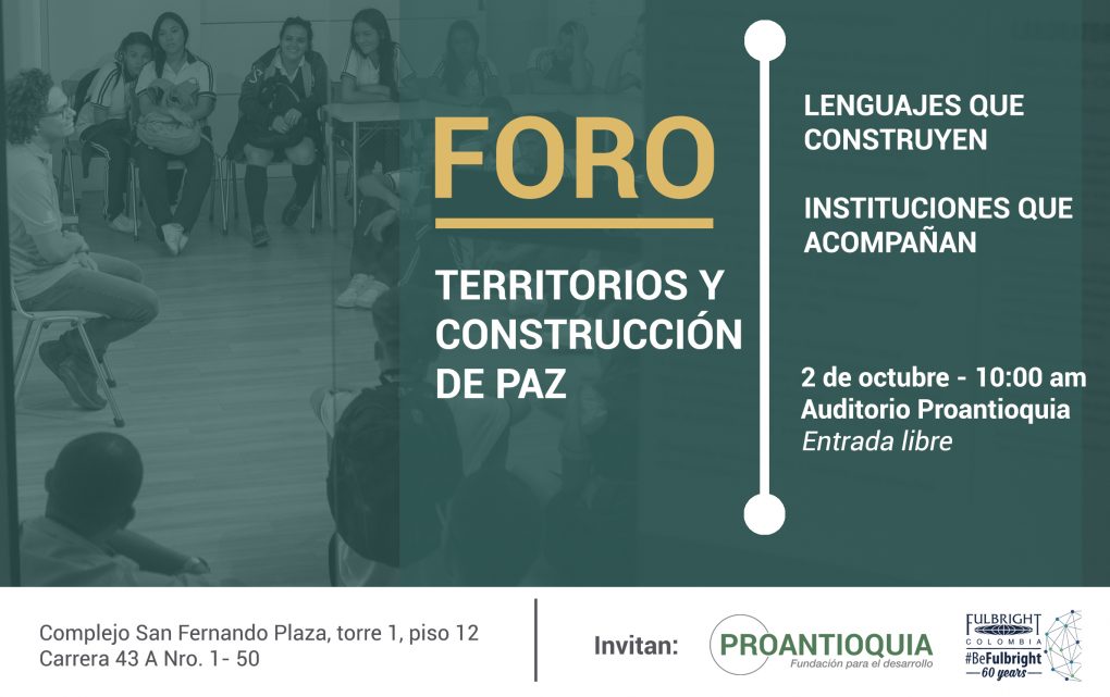 Territorios y construcción de paz, es el Foro que llevaremos a cabo el próximo lunes 2 de octubre a las 10:00 am, en el Auditorio de Proantioquia, en el marco de la e