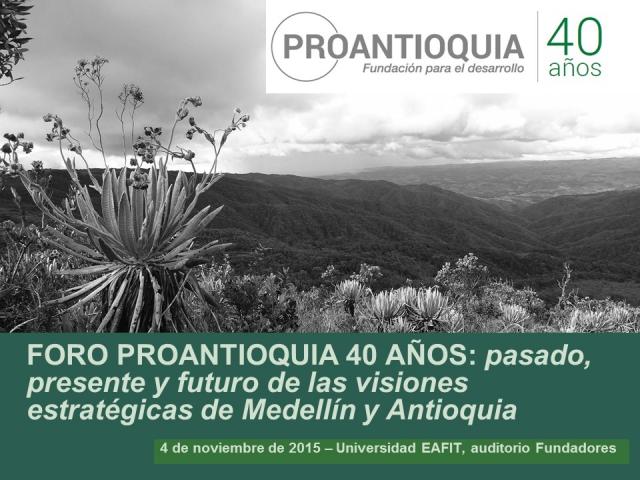 Con motivo de la celebración de los 40 años de Proantioquia, la Fundación realizará, el 4 de noviembre en la Universidad EAFIT, un encuentro para reflexionar colectivamente acerca del papel de los principales ejercicios prospectivos en la región y el camino a seguir para que Medellín y Antioquia refuercen su ruta al desarrollo.