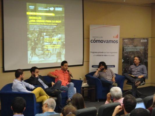 En el marco del Foro Mundial de la Bicicleta, el Centro de Estudios Urbanos y Ambientales de la Universidad EAFIT, URBAM, y el programa Medellín Cómo Vamos realizaron una mesa de debate titulada "Medellín ¿una ciudad para la bici?". La mesa se realizó el miércoles 25 de marzo en las instalaciones de la universidad EAFIT. En ella participaron representantes de URBAM, Medellín Cómo Vamos, Universidad Pontificia Bolivariana, Universidad Nacional, Metro de Medellín, Área Metropolitana del Valle de Aburrá, Teatro Pablo Tobón Uribe y colectivos activistas de la bicicleta.