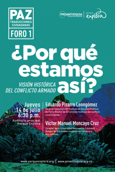 El primer foro será sobre las raíces históricas del conflicto, el jueves 14 de julio de 2016 a las 6:30 p.m. en el Parque Explora, con entrada libre, y tendrá una versión privada para empleados de las empresas afiliadas Proantioquia.