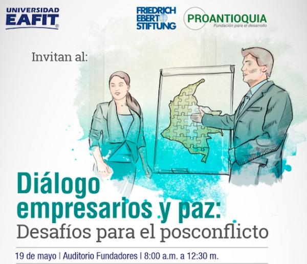 La cita será en el auditorio Fundadores de la Universidad Eafit, de 8 de la mañana a 12:30 de la tarde, con ingreso libre. Invitados internacionales con amplia experiencia en asuntos de paz, resolución de conflictos y transformación social, dialogarán con empresarios de nuestro país sobre el papel de las compañías en el posconflicto y los grandes retos del sector privado en la construcción de una sociedad en paz. Comunidad académica, empresarios, representantes del gobierno y de la sociedad civil, participarán en esta jornada que contará con tres páneles de diálogo:
