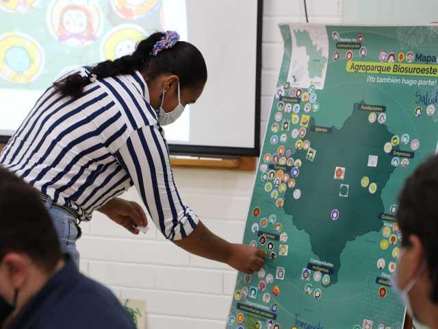 Las habitantes y los habitantes del Suroeste antioqueño pusieron toda su imaginación, necesidades e ideas en la construcción del Agroparque Biosureste. Conversamos, reímos y soñamos durante dos semanas en actividades presenciales guiadas por Indeleble Social, donde descubrimos muchas distintas formas de construir territorios prósperos y sostenibles.